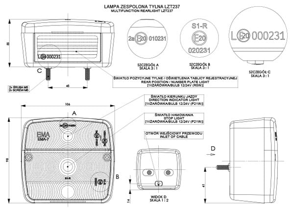 Kombinationsleuchte des Anhängers mit Kennzeichenbeleuchtung