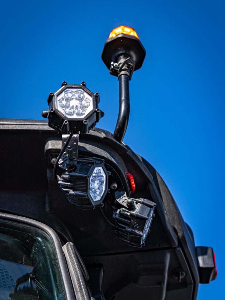 Für Maschinen, die in der Nähe von Menschen oder in Bereichen mit eingeschränkter Sicht arbeiten, sind LED-Arbeitsscheinwerfer mit Warnleuchte ideal, die zusätzliche Signalblinker abgeben, um die Sichtbarkeit der Maschine aus der Ferne zu erhöhen. Auf diese Weise verbessern sie die Sicherheit des Bedieners und der Umstehenden.